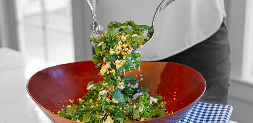 - For the Salad: Toss kale, shaved egg, pepperoncini, bacon and remaining cheese with ¼ cup dressing.