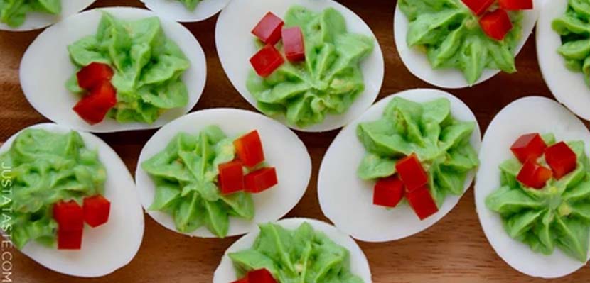 Finally, we're moving on to filling the deviled eggs. There are so many recipes online for deviled eggs, but this one caught our eye because it is so festive.