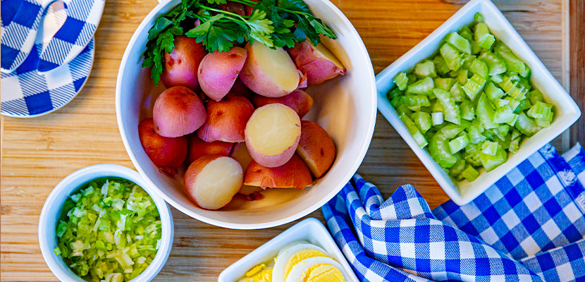 Bonnie's good friend, Penny, visited Bonnie's Kitchen this week as our first special guest. A talented home chef, Penny taught us her favorite recipe for potato salad with sliced hard-boiled egg. Easy, tasty, and quick to pull together, this recipe makes for an ideal lunch or perhaps a dinner side. What makes this salad even easier to make? Shaking your hard-boiled egg with the Negg® egg peeler!