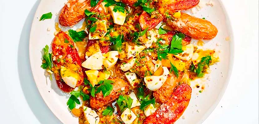 - Roast or microwave potatoes according to instructions. Toss in Gribiche and garnish with fresh parsley.